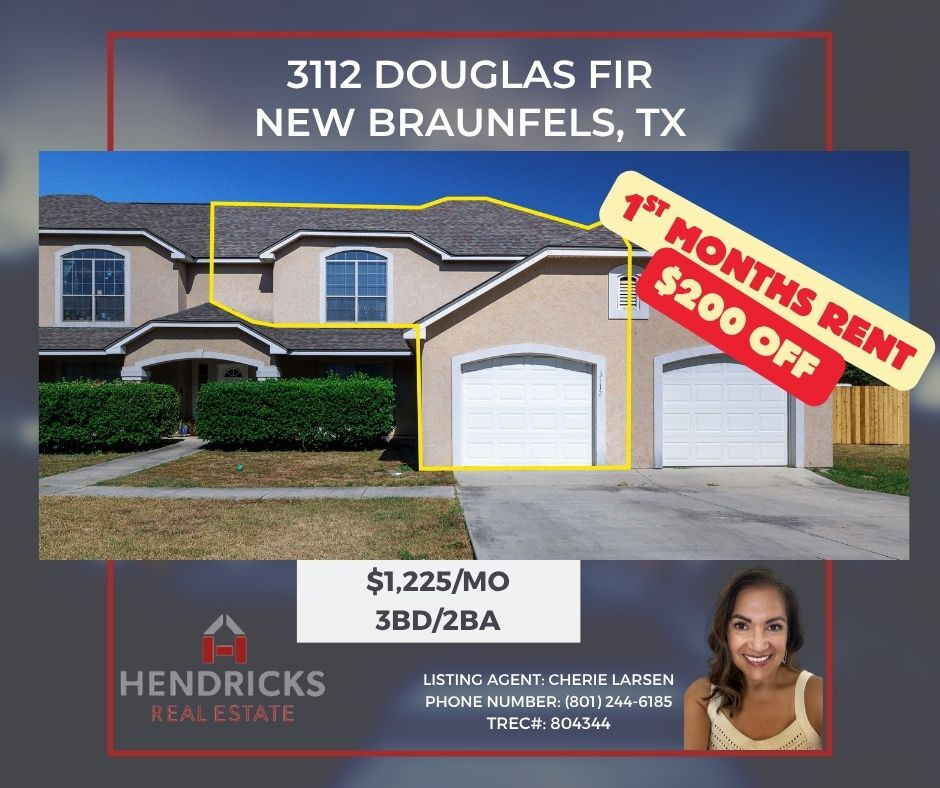 Find your ideal retreat at 3112 Douglas Fir Drive, New Braunfels! This spacious 3-bedroom, 2-bathroom home offers 1,387 sq ft of comfort and relaxation.
