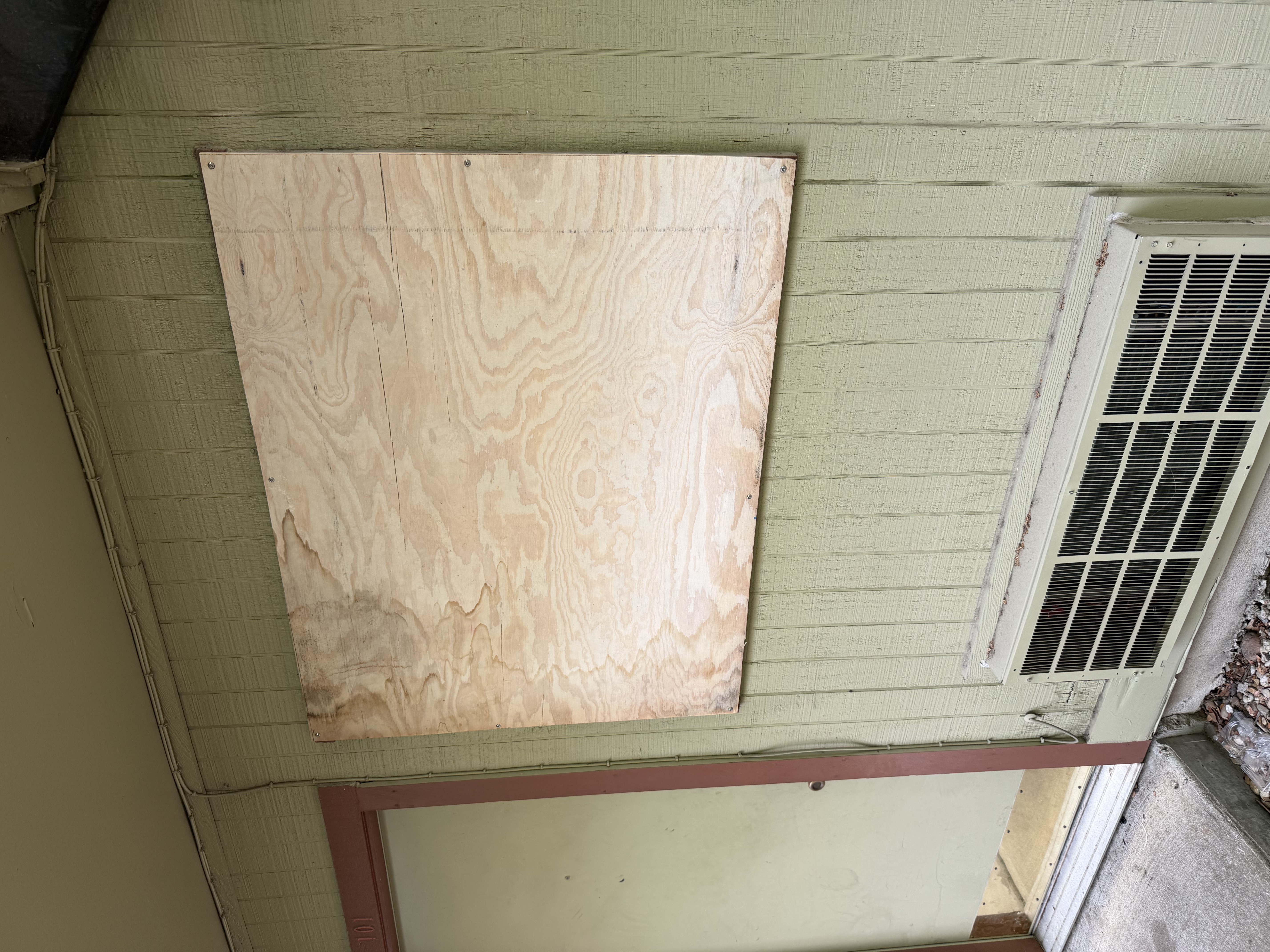 - Saturday morning - one of the neighbors reported hearing and seeing signs that the squatters were back, and observed that it looked like a window had been broken open to gain access. We called 911 to report the situation, informing the dispatcher that it was a repeat issue, and we were en route to the property. APD was there within minutes (before I made it), and removed the two squatters in the unit. They asked if we wanted to press charges (yes!), and arrested the two individuals. We boarded up the broken window and got our trash out crew mobilized to get the rest of the stuff out of the unit.
